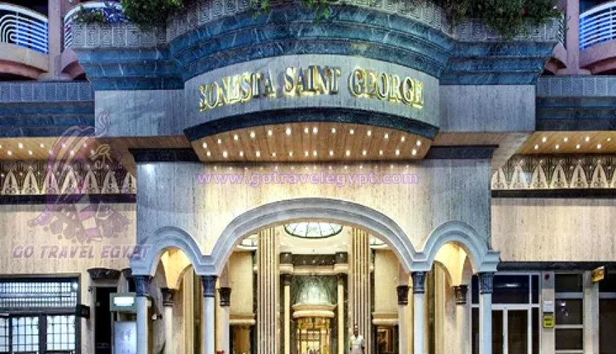 Sonesta St. George Hotel Luxor has sweeping terrace with majestic views of the Nile, grand entrance of polished marble and handsomely appointed furniture.